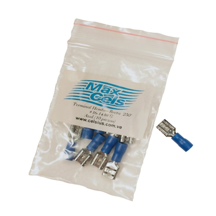 TERMINAL HEMBRA-MACHO 250″ (AZUL) 050 16-14AWG (BOLSITA 10 PZAS)